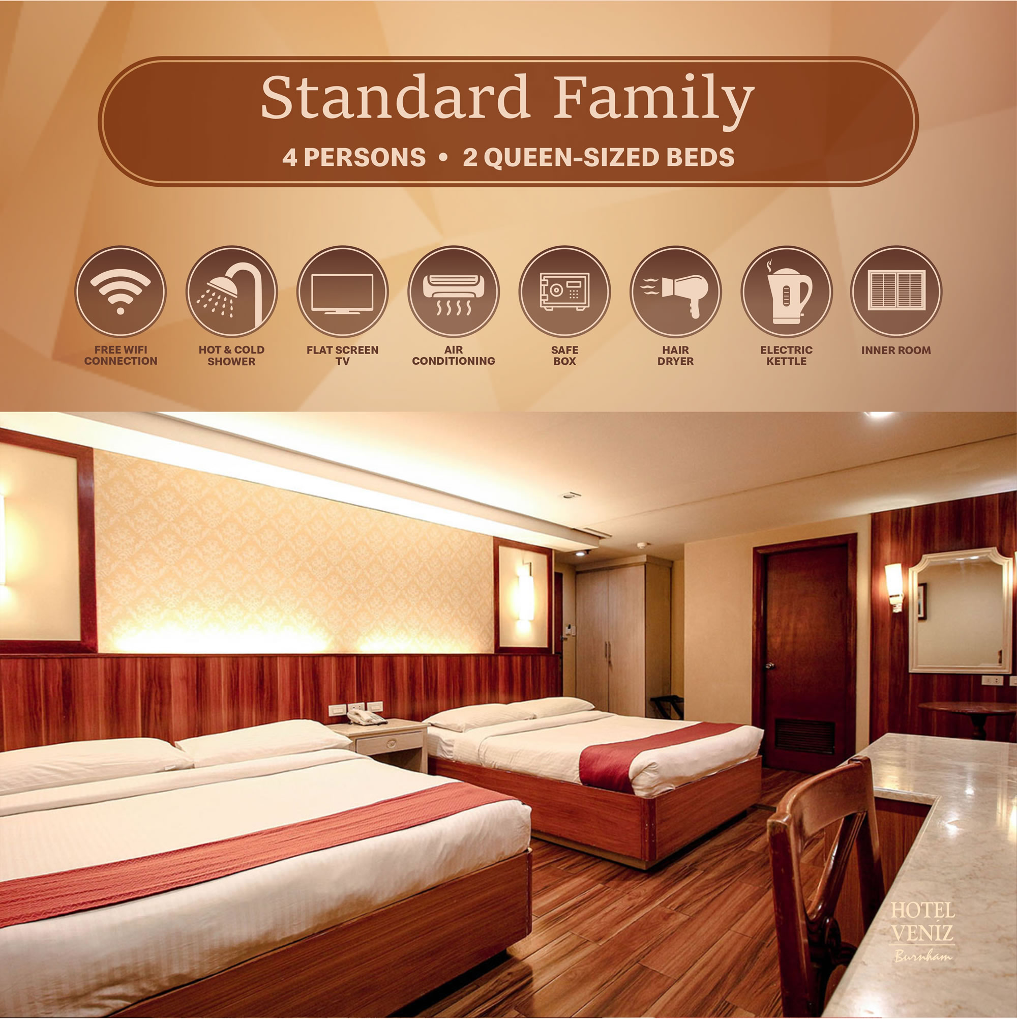 The Standard Family Rooms is perfect for a family of four with two queen-sized beds. No window.